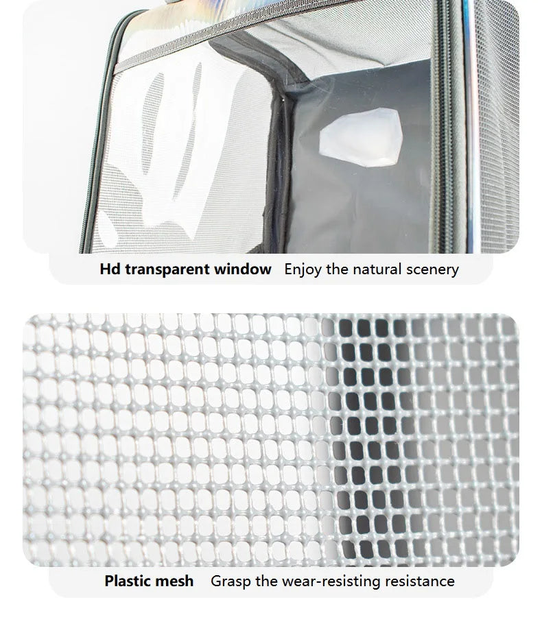 Le fond spacieux permet d’accueillir un chat jusqu’à 7 kg tout en garantissant stabilité et confort. Les bretelles rembourrées réduisent la pression sur les épaules, offrant un port agréable lors des déplacements. Adopté par des propriétaires attentifs au bien-être animal, le modèle séduit aussi par ses reflets lumineux et son style unique.