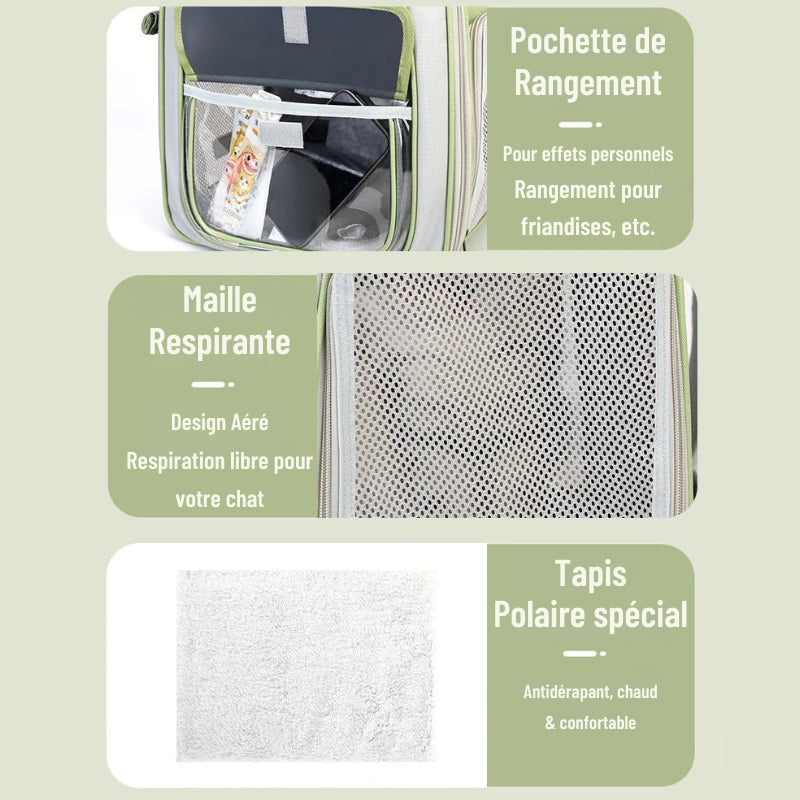 Le sac de transport chat offre un espace stable et aéré qui réduit le stress de l’animal. Grâce au design, le chat observe son environnement et reste plus détendu.